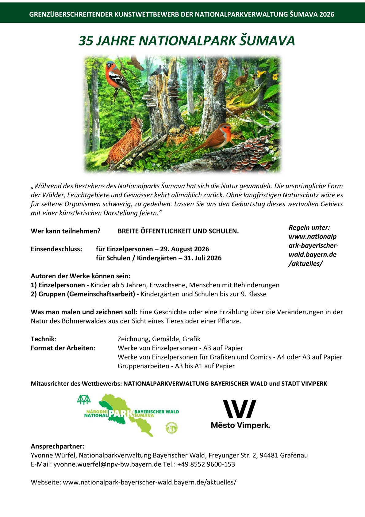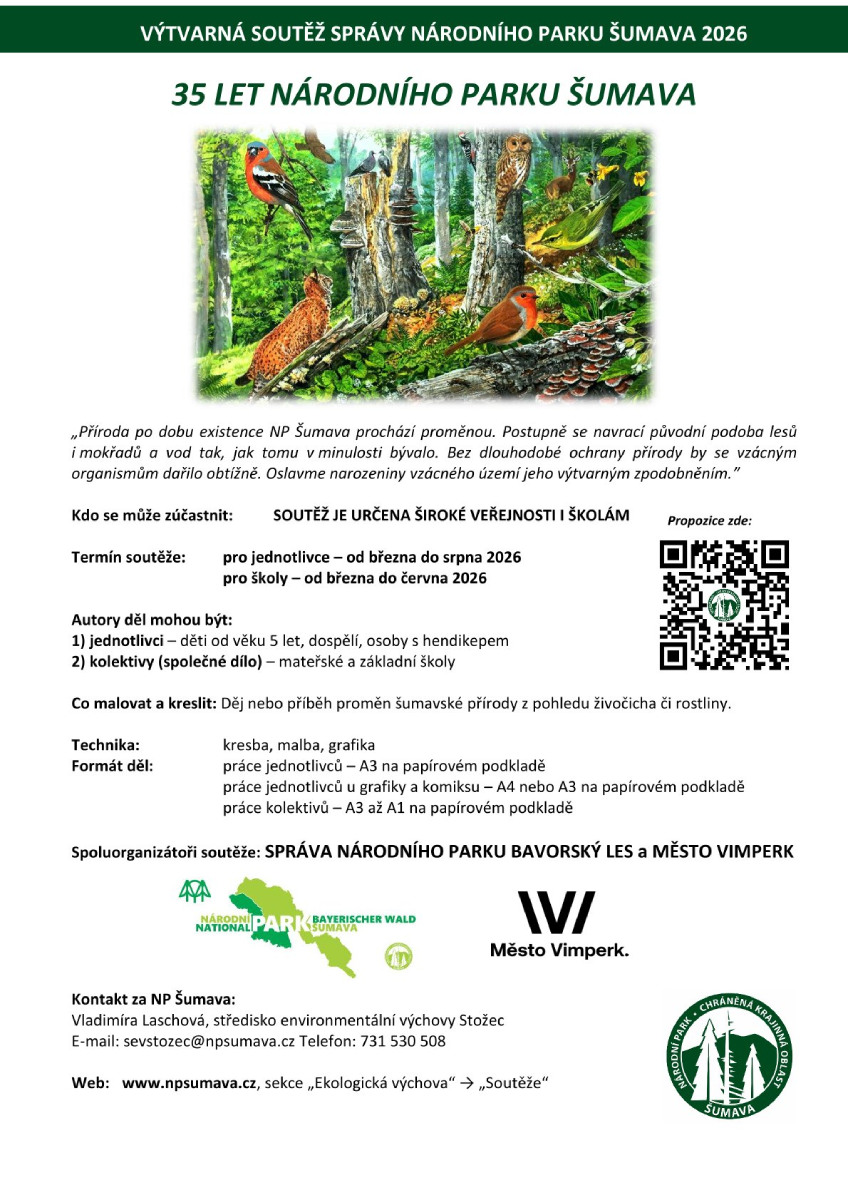 Spoluorganizátoři soutěže jsou Správa Národního parku Bavorský les a město Vimperk.