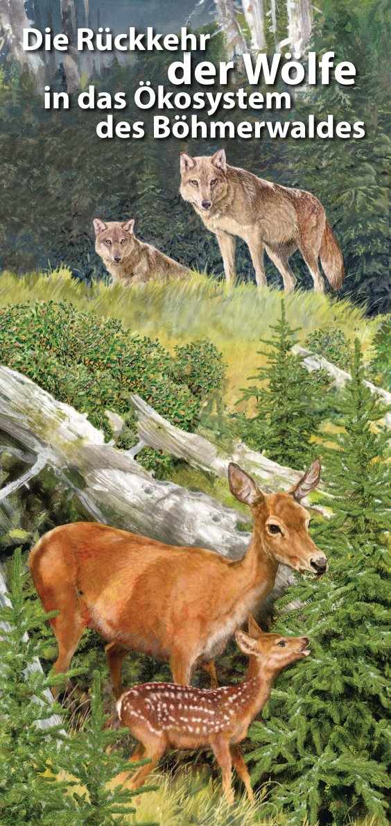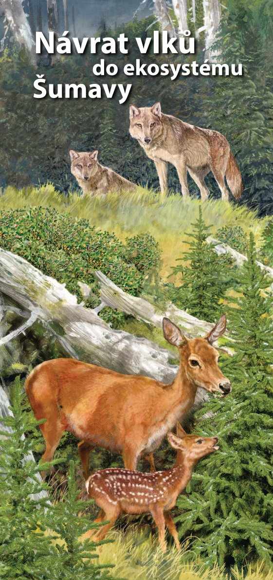 Leták k projektu, který má za cíl studovat interakce mezi predátory, jejich kořistí a lesní vegetací v ekosystému Šumavy.