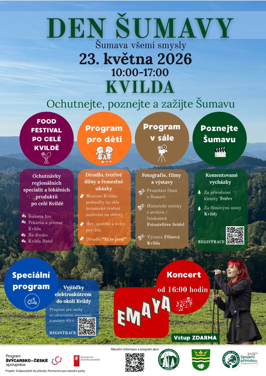 Přijďte strávit příjemný den na Kvildě, poznat šumavskou přírodu, ochutnat regionální speciality a zapojit se do pestrého programu pro malé i velké návštěvníky.