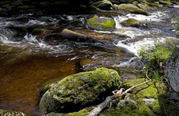 Z parkoviště Velký Bor sejdeme do kaňonu Křemelné (modrá TZT), a pak již stoupáme po úpatí hory Křemelné.
