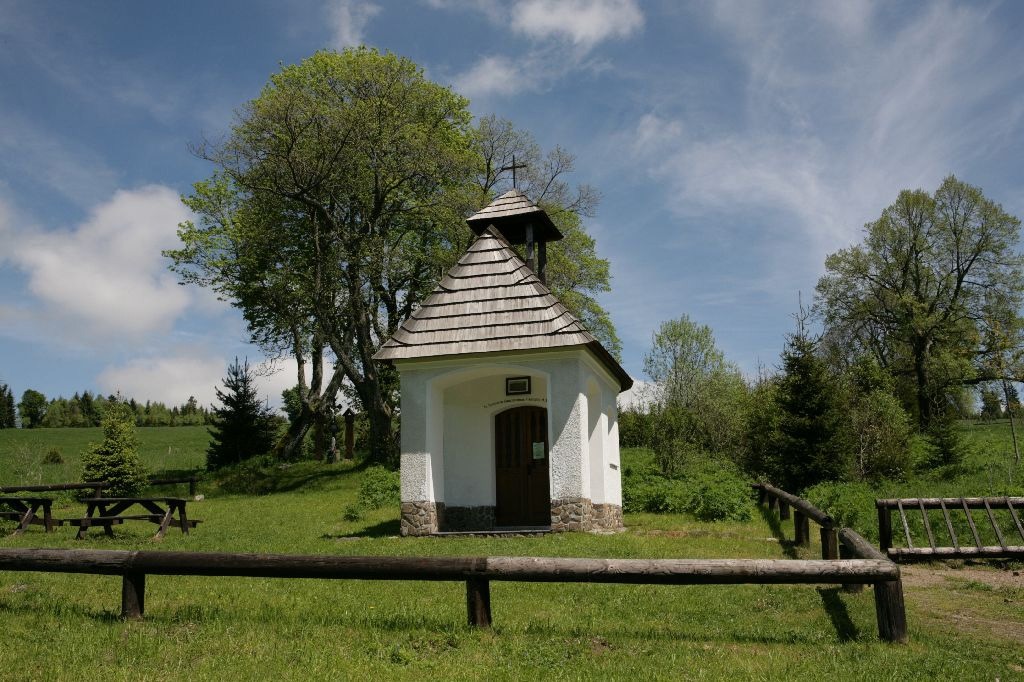 Dnes tu stojí nová kaple Nejsvětější trojice, pomník americkým vojákům padlým zde při osvobozování Šumavy a originální kříž smíření.